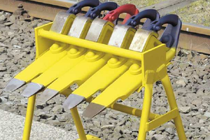 Unser Hemmschuhständer: damit sind die Hemmschuhe immer griffbereit und sofort verfügbar.
