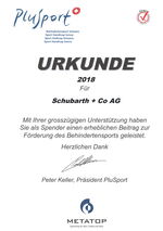 Schubarth unterstützt PluSport (Behindertensport Schweiz)